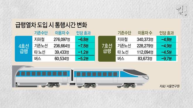 직접 찾아보니, 노선마다 급행 열차를 도입했을 때 출퇴근 시간이 줄어든다는 식의 효과 연구도 여러 개였다. 이런걸 보면 급행 도입에 진심이었던 사람들이 과거나 지금이나 엄청 많은 것 같다.