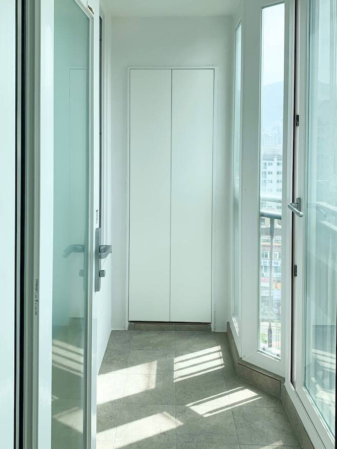 베란다 가장 안쪽은 창고장으로 제작하여 캐리어나 자전거 등 부피가 큰 물건들을 보관하고 있어요.