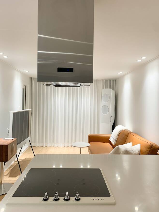 집을 수리하는 데 있어 가장 집중했던 부분이 확장 효과였던 만큼, 거실 주방 전체를 매립등으로 시공하게 되었어요.