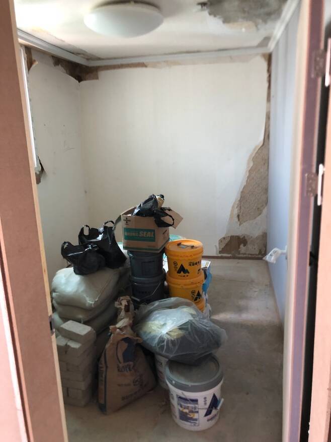 또 앞서 말했듯이 냉장고의 위치를 놓고 정말 많은 고민이 있었는데요. 기존 세탁실을 냉장고장으로 만들고 세탁실을 베란다에 설치하는 점도 고려해보았지만 관련 시공이 많이 번거롭기도 하고 설치 후에도 문제점이 발생하기 쉽다고 하여 이는 포기하게 되었어요.