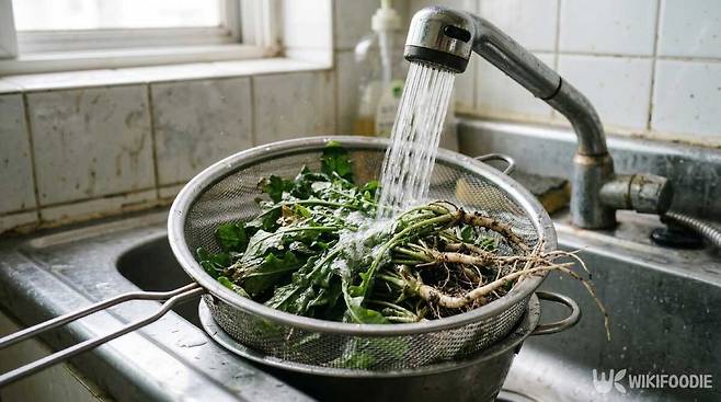 1. 냉이는 물에 여러 번 헹궈 흙을 제거한 뒤 3cm 길이로 자른다.