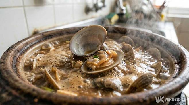 바지락은 국물 요리에 들어가면 감칠맛을 확 끌어올린다. 타우린과 철분이 풍부하며 해산물 특유의 시원한 국물을 만든다. 여기에 멸치육수를 더하면 바다 향이 과하지 않으면서 깊은 국물이 완성된다.