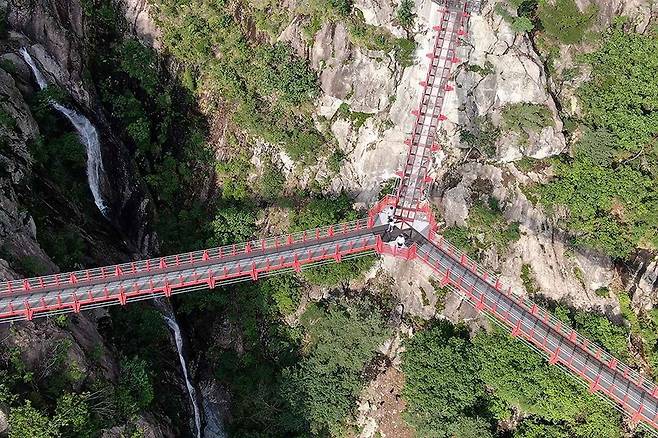 다리 아래로 보이는 비계산과 의상봉, 그리고 주변 폭포까지… 정말 그림 같은 풍경이 펼쳐집니다.