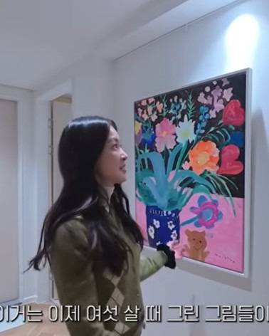 이는 첫째 아들 이안 군이 어린 시절 그린 작품들로, 이시영은 “6살 때 그린 그림”이라고 설명하며 애정을 드러냈습니다. 집안 곳곳에 아이의 그림이 전시되어 있어 따뜻한 가족 분위기를 형성하며, 단순한 장식을 넘어 추억을 담은 공간으로 의미를 더했습니다.
