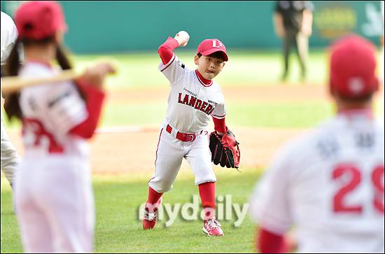 [마이데일리 = 인천 송일섭 기자] SSG 김광현 아들 김민재군이 24일 오후 인천광역시 문학동 SSG랜더스필드에서 진행된 '2022 KBO 리그' SSG 랜더스와 두산 베어스의 경기에서 시구를 하고 있다.