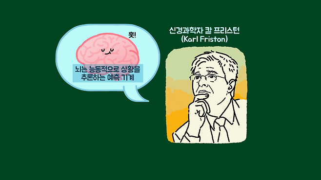 이러한 뇌의 작용에 최근 뇌과학자들은 뇌가 단순히 외부 상황을 받아들이는 것이 아니라 능동적으로 추론하고 예측한다는 예측 부호화(Predictive coding) 이론을 제시하고 있습니다.