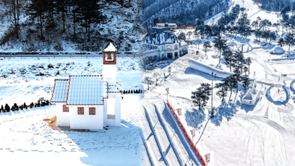흰 눈 위로 하얀 외벽의 건물이 조화를 이루며, 마치 스위스의 작은 마을에 와 있는 듯한 착각을 불러일으키는데요. 산책로를 따라 천천히 걸으며 겨울 자연을 감상하는 것만으로도 마음이 차분해집니다. 사람들의 발길이 적은 계절이라 더욱 조용한 시간을 보낼 수 있어, 연인과 함께하거나 혼자 사색에 잠기기에 제격입니다.