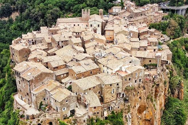 절벽 위에 있는 중세 마을의 광경은 눈길을 사로잡을 만큼 웅장하죠.