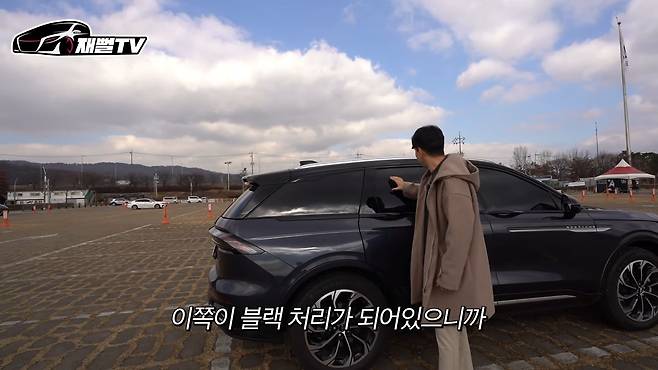 후면부로 이어지는 루프 라인도 멋있어요. 일반적으로 레인지로버라든지 다른 차들과 많이 착각을 하실 것 같아요. 그리고 이게 블랙 처리가 되어 있으니까 창문이랑 후면부까지 하나가 되는 느낌인데, D필러 라인 쪽이 굉장히 예쁘거든요. 이렇게 싹 꺾여 내려간 이 느낌이 디자인적으로는 경쟁차들에게 뒤지지 않는 오히려 좀 더 예쁜 디자인을 갖고 나왔어요.