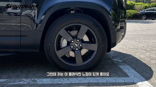 그리고 디펜더에 대해 제일 많이 듣는 지적은 휠이 아쉽다는 부분입니다. 개인적으로는 이 클래식한 느낌이 되게 좋아서 두꺼운 휠을 선호합니다. 도심형 SUV 느낌을 내고 싶다면 스포크가 많은 사제 휠을 사용하시거나 22인치 휠로 교체하셔도 잘 어울립니다.