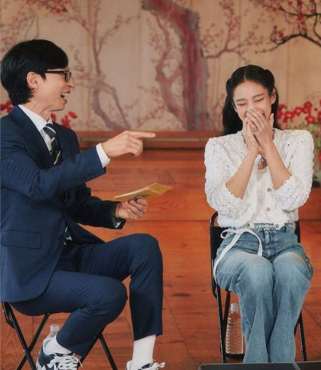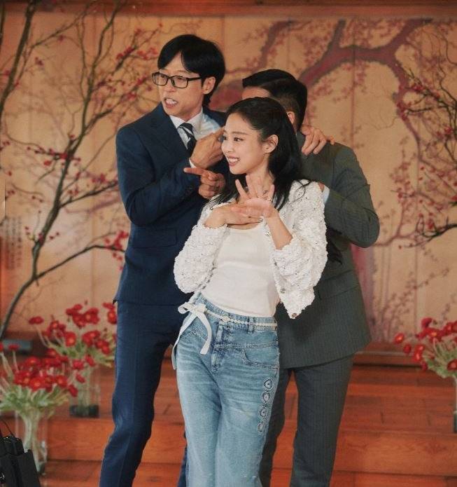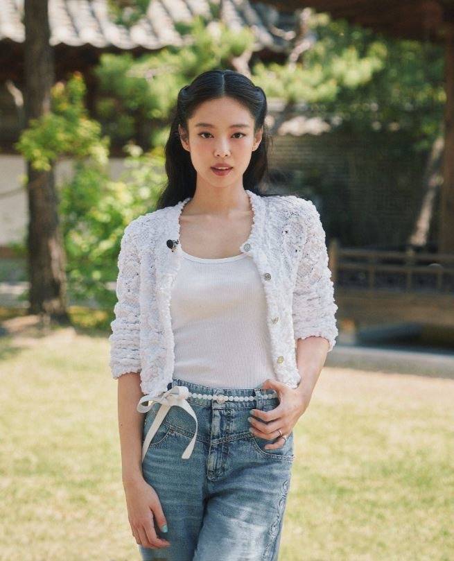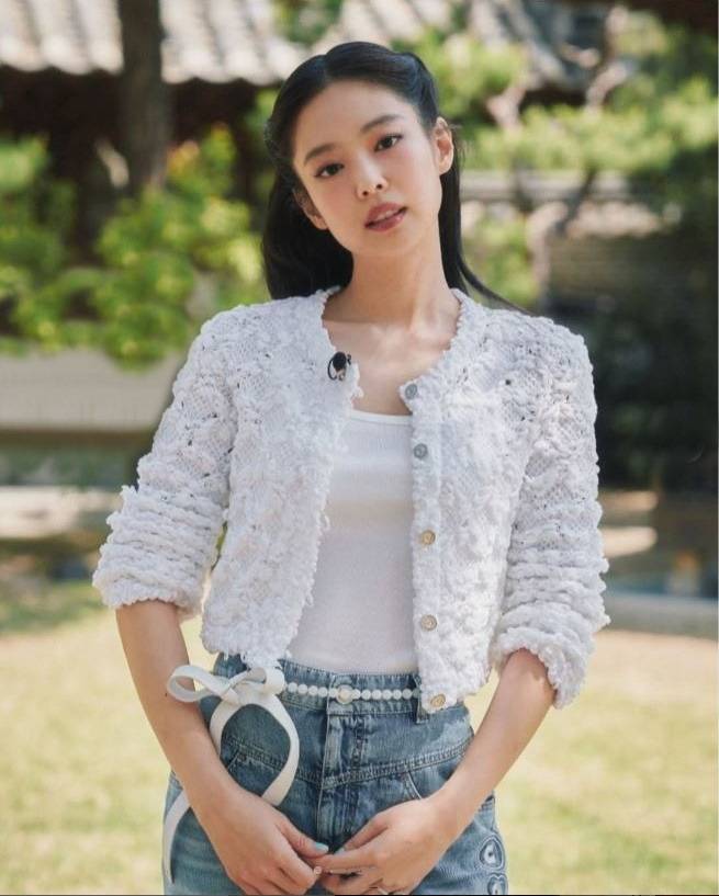 제니는 지난 5월 7일 방송된 tvN 예능 '유 퀴즈 온 더 블럭'(이하 '유퀴즈')에 게스트로 출연, 레이스와 크로셰 소재의 화이트 카디건과 청바지를 매치한 시크한 일상룩을 선보였다.