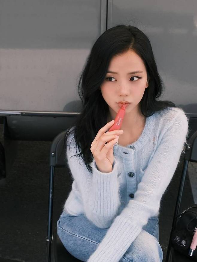 지수는 포근해 보이는 민트 카디건과 청바지를 매치한 청순 여친룩으로 립글로스를 입술에 바르거나 손에 들고 포즈를 취하며 화보 같은 분위기를 연출했다.
