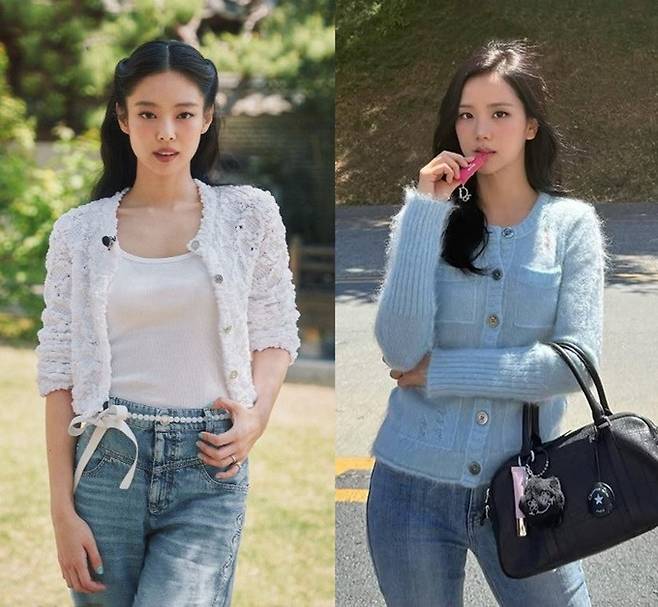 블랙핑크(BLACKPINK) 제니, 지수가 같은 듯 다른 카디건룩을 선보였다.