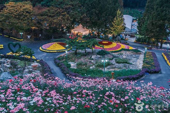 봄에는 튤립과 수선화가 화사하게 피어나고, 여름에는 수국이 정원을 가득 채웁니다. 가을엔 국화가, 겨울엔 별빛과 레이저 불빛이 숲을 밝히며 새로운 매력을 선사하죠.