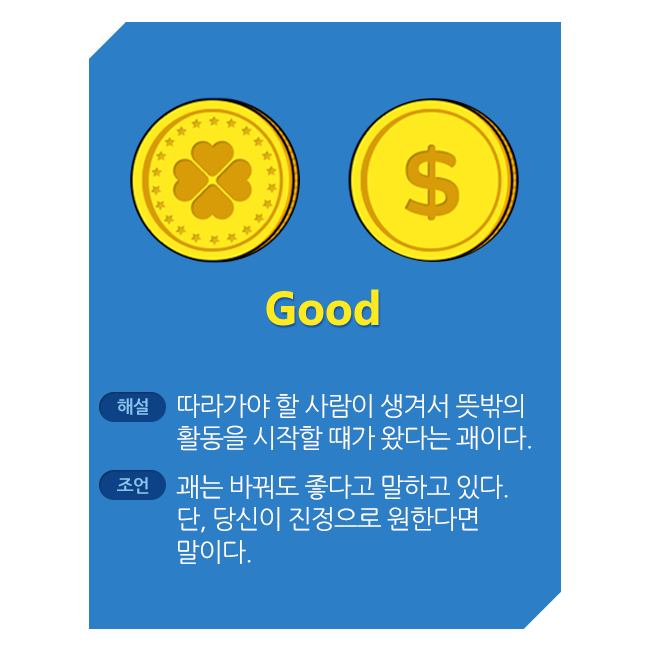 신중하게 생각 후 동전을 선택하시고 같은 사안에 대해서는 한번만 점쳐 보시기 바랍니다.