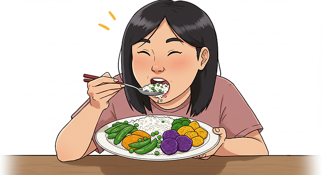 채소와 함께 밥을 먹으면 혈당 상승을 줄일 수 있습니다. 실험에서 채소밥을 먹은 사람들은 흰밥만 먹은 사람보다 혈당 상승이 현저히 낮았습니다. 채소에 함유된 식이섬유가 탄수화물의 소화와 흡수를 늦추기 때문입니다.