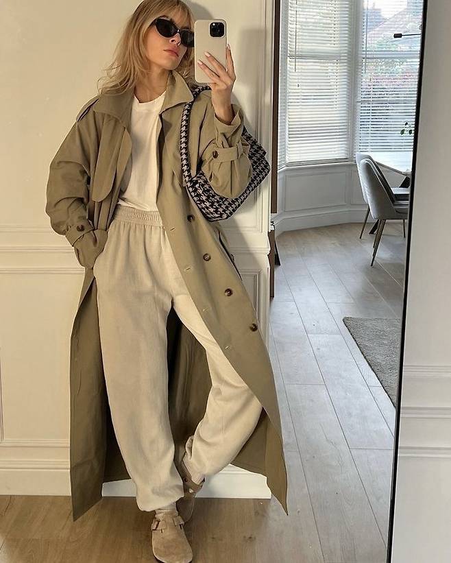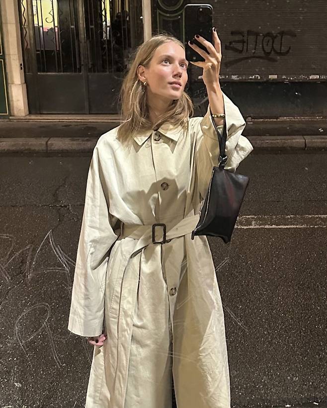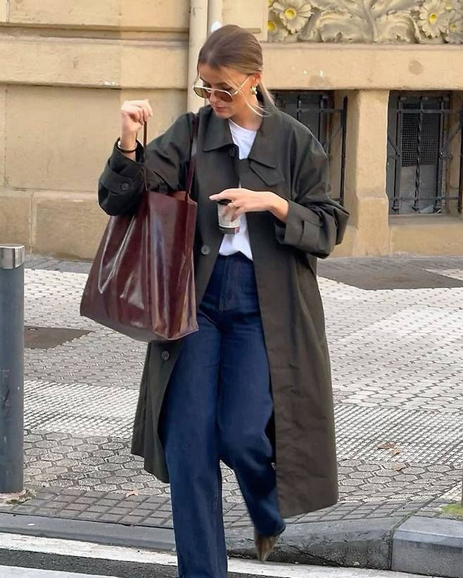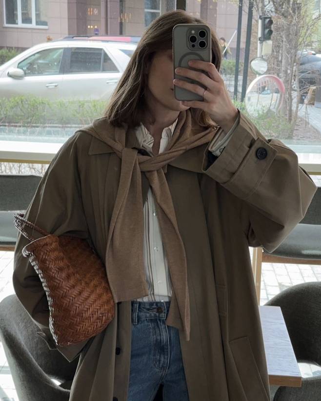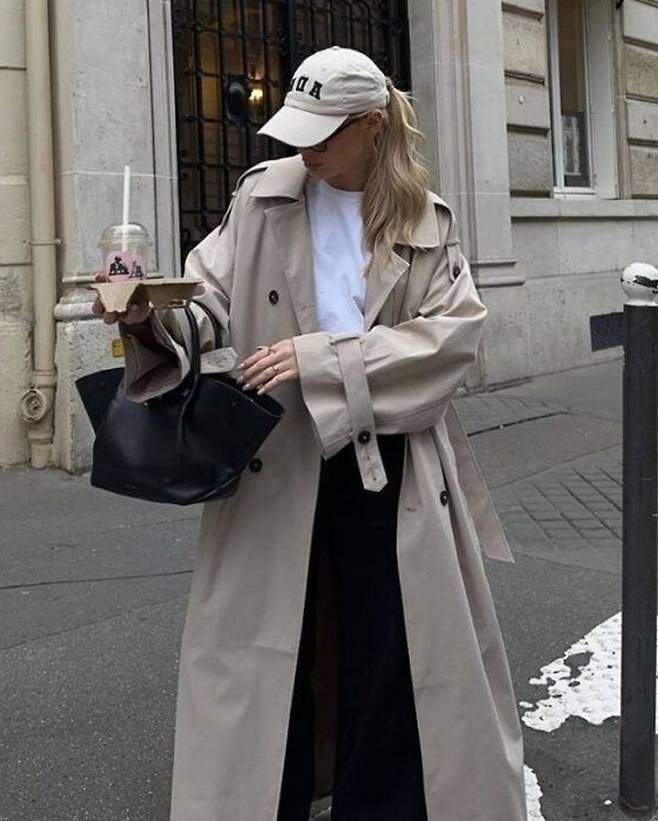 너무 큰 백보다는 적당한 사이즈의 백이 좋아요.⠀만약 코트를 잠궈서 입는다면, 허리끈은 루즈하게 풀어서 편안한 느낌으로 입는 게 요즘 스타일이랍니다.😉