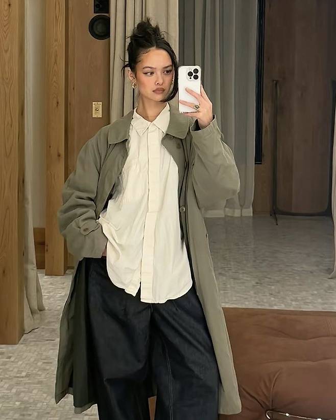 기본 컬러인 베이지색 뿐만 아니라 카키, 그레이 색을 입어주면 조금 더 도시적이면서도 빈티지한 분위기를 연출할 수 있죠.