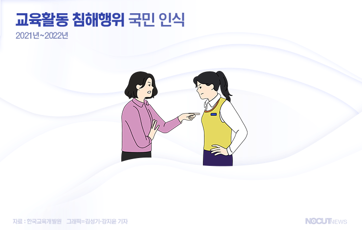 교육활동 침해행위가 심각해지는 이유는 무엇일까요? 한국교육개발원이 지난해 발표한 '교육여론조사'에 따르면 성인남녀 54.7%는 교육활동 침해행위가 심각해지는 이유에 대해 '학생 인권의 지나친 강조 때문'이라고 응답했습니다. 이는 지난해 44.5%보다 10.2%p 늘어난 수치입니다.
