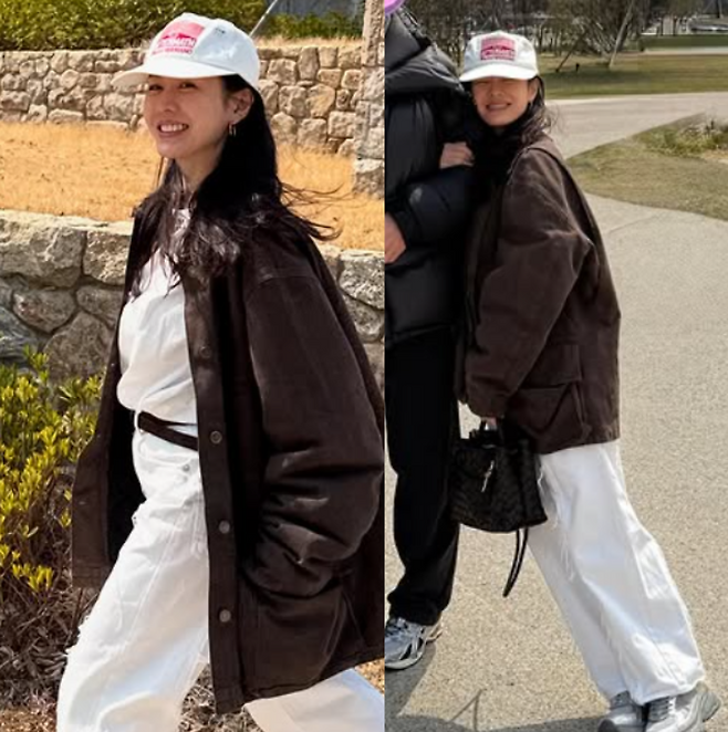 손예진 님은 루즈한 실루엣의 브라운 재킷을 착용해 멋스러움을 강조했어요. 자연스럽게 흐르는 핏이 캐주얼하면서도 고급스러운 무드를 연출했죠.