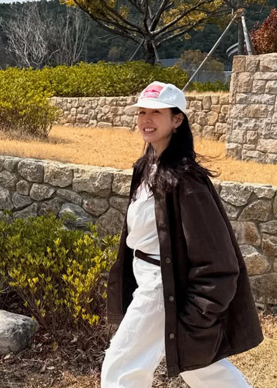손예진 님은 얼굴보다 큰 넉넉한 사이즈의 모자를 착용해 귀여운 분위기를 연출했어요. 모던한 룩에 유니크한 매력을 더한 포인트였답니다.
