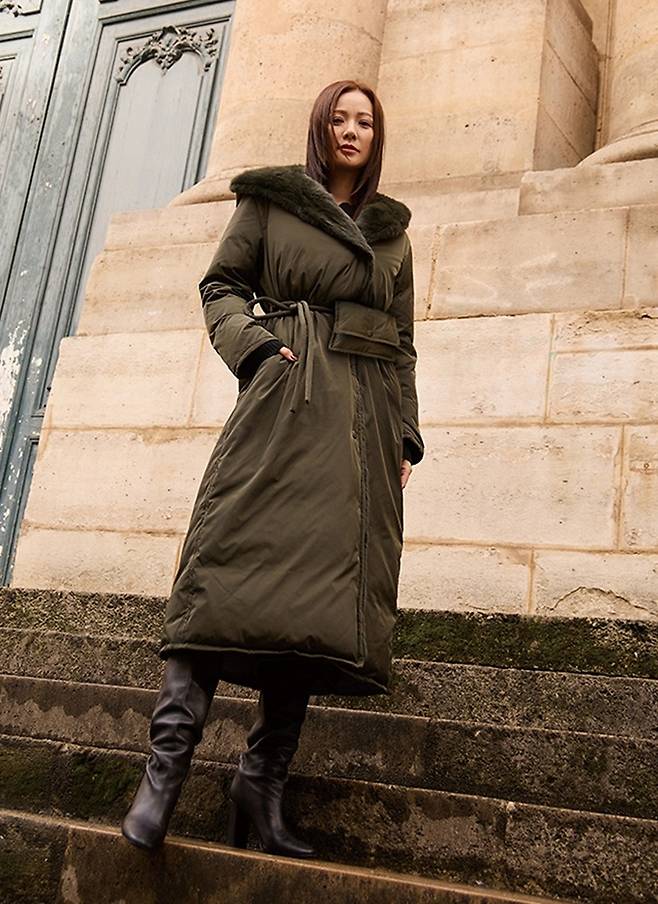 손태영은 프랑스 하이엔드 럭셔리 브랜드 이브살로몬(YVES SALOMON)과 함께 한 겨울 화보에서 변함없는 아름다운 외모로 우아하고 고혹적인 분위기를 자아냈다.