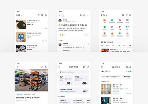 당근마켓은 중고 물품 거래 서비스 중에서 가장 많은 주목을 받는 플랫폼이라 할 수 있다. ‘당신의 근처에서 만날 수 있는 거래’란 의미를 담은 당근마켓은 위치를 기반으로 중고 거래를 할 수 있는 서비스다. 2015년 판교에서 시작해 2018년 전국으로 서비스를 확장한 당근마켓은 2020년 9월 기준으로 이용자 천만 명을 넘었으며, 지금은 중고 거래를 비롯한 다양한 생활 밀착형 콘텐츠를 제공하고 있다.