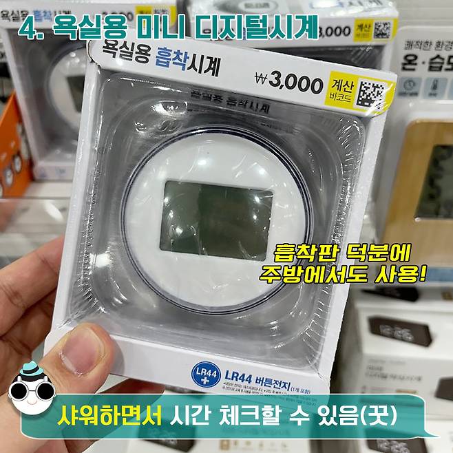 4. 욕실용 미니 디지털시계 (3,000원)
