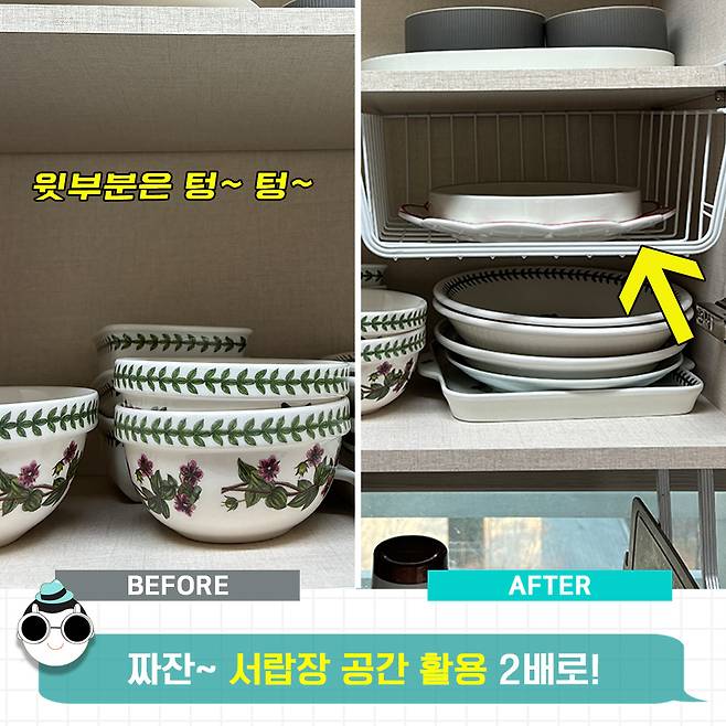 서랍장을 위아래로 넓게 활용하는데는 이만한 게 없어요. 수납공간을 2배로 늘려준다구요~