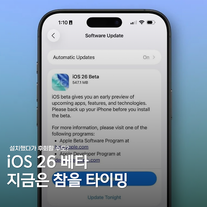"iOS 26 베타, 설치 전에 딱 한 번만 생각해보세요" 라는 말이 절로 나오는 이유도 바로 여기에 있습니다.