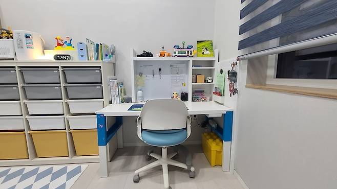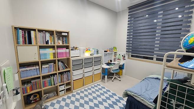초등학교 2학년 아들 방입니다. 아이들 방도 고학년이 되면 주니어 가구로 바꿀 예정이라 이번에는 가구를 새로 구매하지 않고 기존 가구들을 최대한 활용하여 배치해 줬어요.