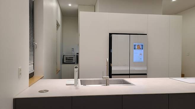 원래는 비스포크 키친 핏 1 도어 냉장+냉동+김치 냉장고 조합으로 3개를 넣을 계획이었지만, 용량의 압박으로 최종적으로는 프리 스탠딩 4도어 1기와, 김치냉장고 키친 핏으로 1개 설치하였습니다.