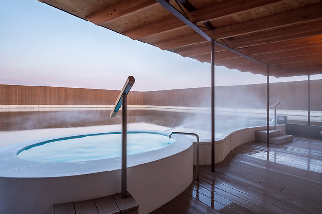 부대시설로는 온천과 피트니스 시설도 마련돼있다. 특히 온천은 지하 1,200m 암반에서 솟아나는 천연 온천수를 활용했다. 드넓은 논뷰에 스며들듯 아름다운 경치를 바라보며 온천욕을 즐길 수 있다. 핀란드식 사우나도 갖추고 있다. 논이 한 눈에 내려다보이는 도서관 이용도 놓치지 말 것.