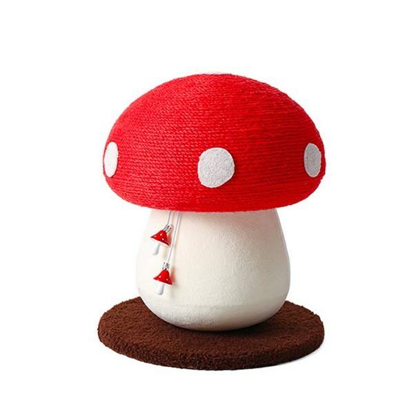 버섯 모양의 스크래쳐로, 기둥과 바닥 부분엔 삼줄이 감겨있지 않습니다. 버섯 머리 색상이 진한 빨강이라, 집안 인테리어의 포인트 가구로 사용해도 좋답니다.
