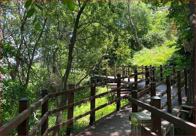 주차장에서 약 도보 15분이면 명상정원에 도착할 수 있습니다. 길은 전 구간이 데크로 이어져 있어 처음 방문하는 분들도 편안하게 걸을 수 있지요.