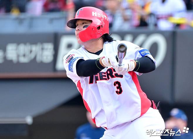 김선빈은 지난달 28일 대전 신구장에서 열린 첫 경기에 출전해 1회 초 첫 타석 상대 선발 코디 폰세를 상대로 신구장 1호 안타를 때렸다. 이후 두 타석에서 안타가 없었던 김선빈은 6회 말 수비 때 변우혁과 교체돼 경기를 일찍 마무리했다.