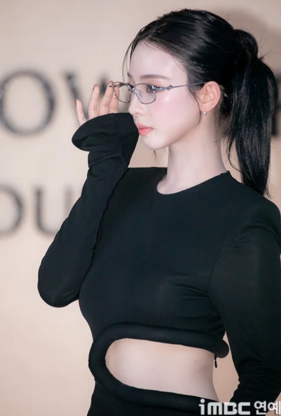 이날 카리나 님은 얇은 실버 프레임의 무테 안경을 착용했는데요. 안경 하나로 얼굴이 훨씬 맑고 정제된 인상을 주었어요. 차가우면서도 단정한 느낌, 그리고 살짝 지적인 분위기까지 동시에 느껴졌죠.