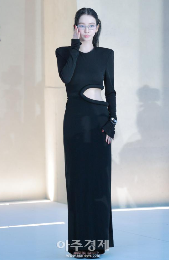 헤어는 깔끔한 포니테일로 묶어 작은 얼굴을 더욱 돋보이게 했습니다. 전체적인 룩은 블랙 롱원피스로 마무리해 시크하면서도 우아한 무드를 연출했죠. 군더더기 없이 심플한 스타일링이지만, 카리나 특유의 분위기로 완벽하게 소화했어요.