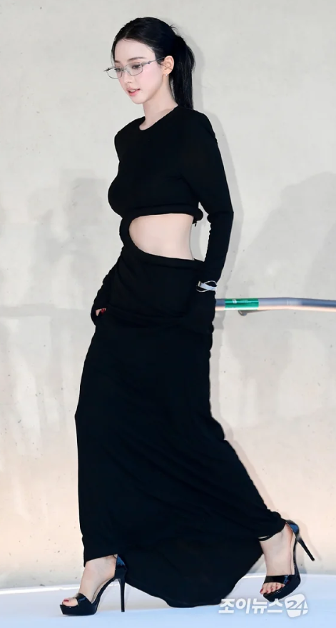 화려한 액세서리 하나 없이도 카리나 님은 존재감만으로 시선을 압도했어요. 무테 안경과 포니테일, 블랙 원피스의 조합이 이렇게 완벽할 수 있을까요? ‘AI 미모’라는 별명이 괜히 붙은 게 아닌, 진짜 사람 맞나 싶을 정도의 비현실적 미모를 보여주었습니다.