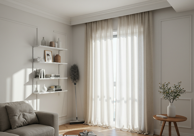 - 진공청소기 또는 먼지 제거용 밀대로 전체 공간을 빠르게 훑고