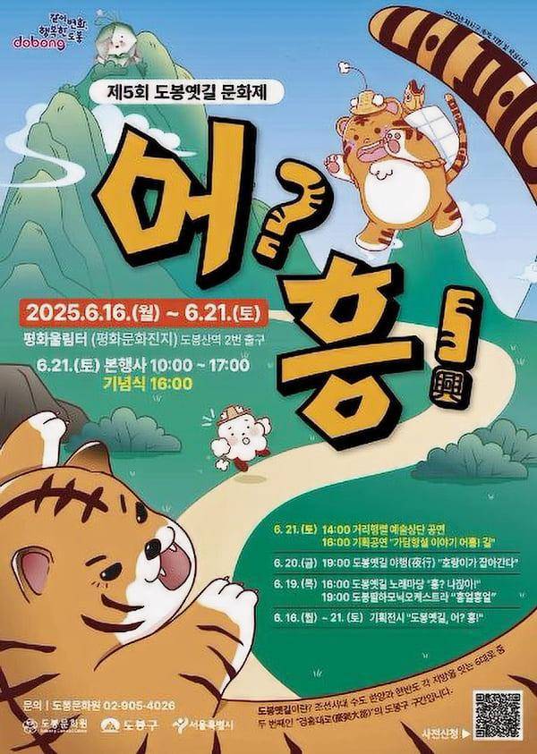 올해로 5회를 맞이한 이 행사는 ‘어? 흥(興)!’이라는 주제로, 도봉의 옛길을 따라 전통과 현대가 어우러진 다채로운 프로그램을 선보입니다.