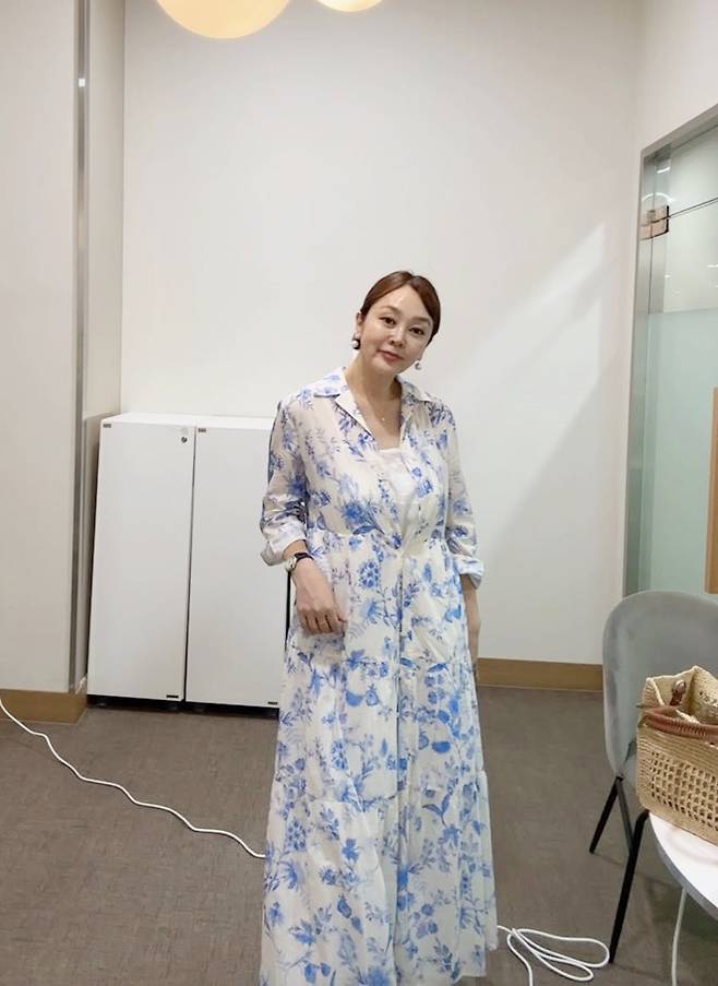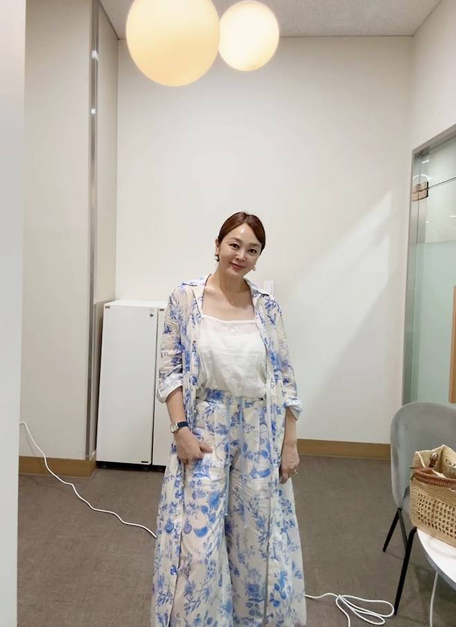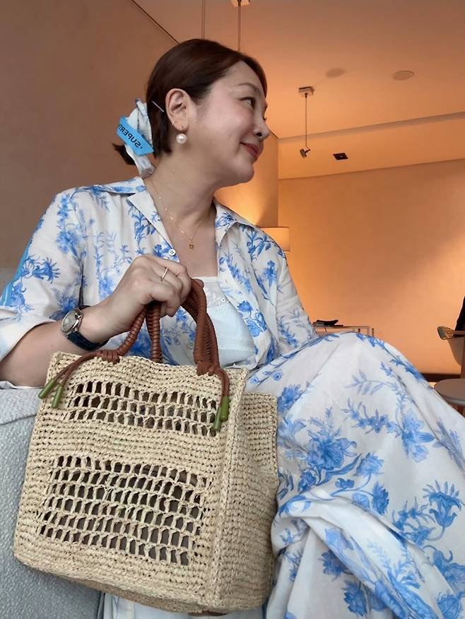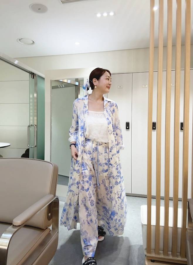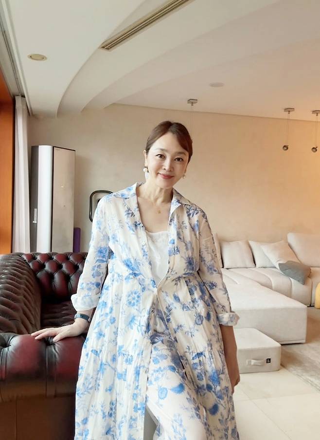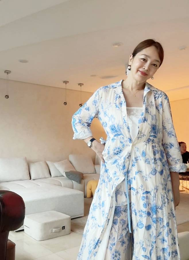 공개한 사진에서 이승연은 모던한 실내 공간에서 청량한 블루 플라워 패턴의 셋업을 착용해 단정하면서도 감각적인 스타일링을 선보였다.