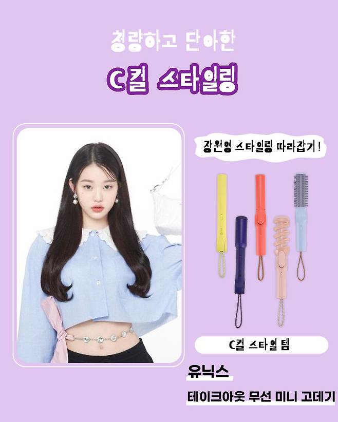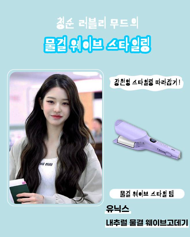 장원영은 '그냥' 예쁘기도 하지만, 다양한 헤어 스타일링과 메이크업의 흐트러짐 없는 완벽한 모습으로 매번 감탄을 불러일으키는 장원영의 헤어 스타일링을 헤어 스타일러를 이용하여 손민수 해보자!