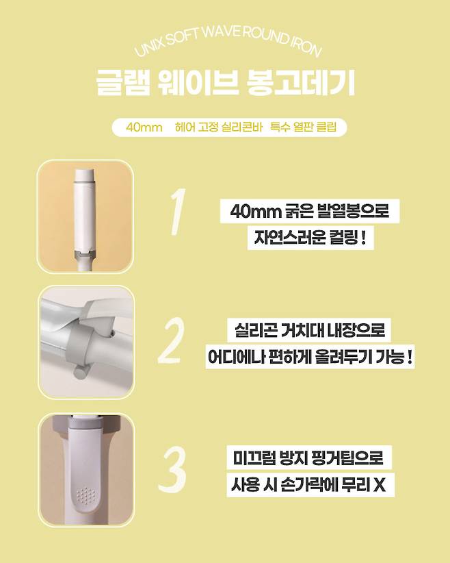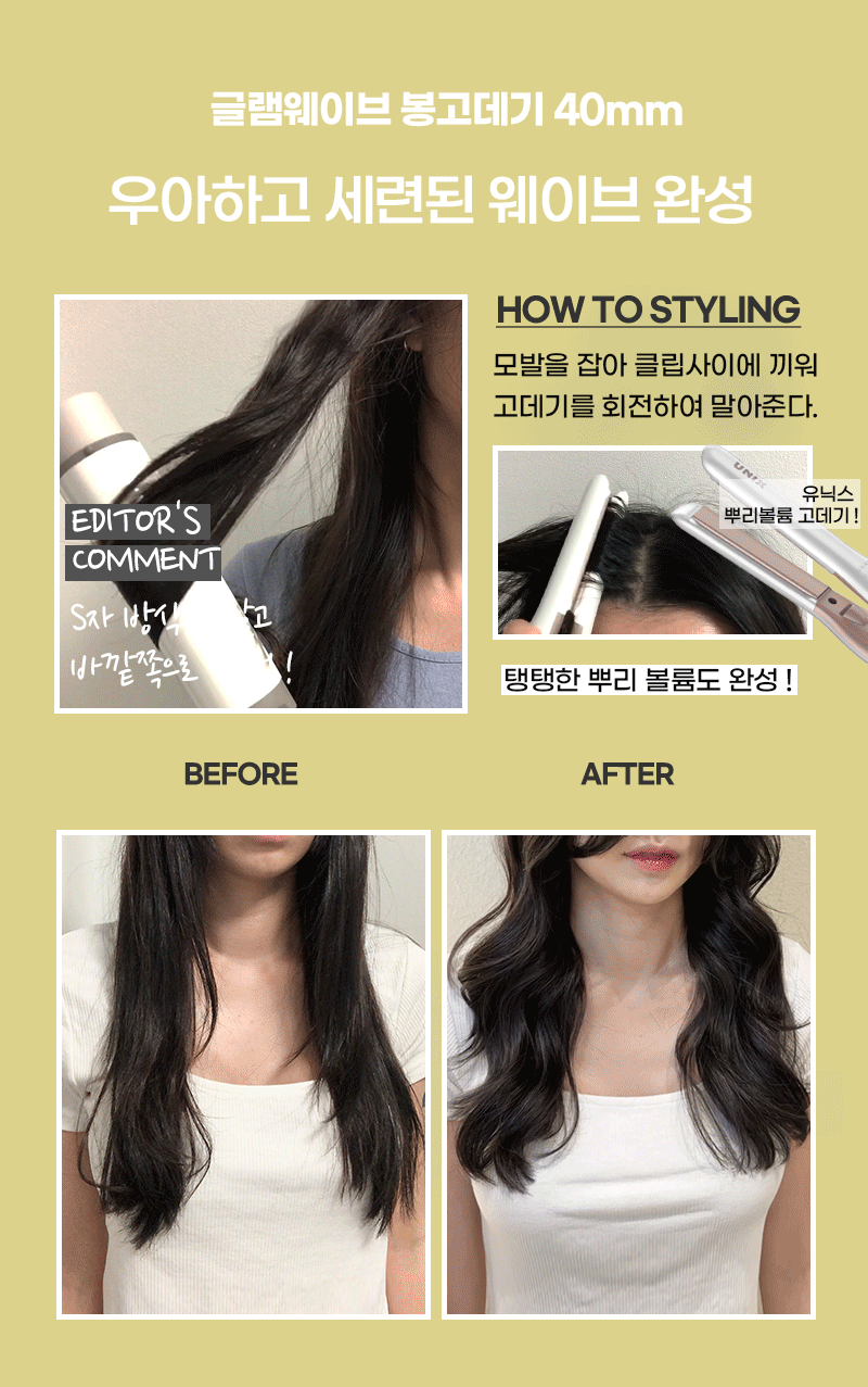 보다 확실하고 지속력 좋은 굵은 컬 웨이브는 유닉스 글램 웨이브 봉고데기