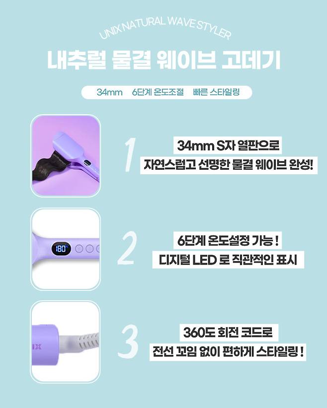 아주 빠르고 완벽한 물결 웨이브를 완성할 수 있는 유닉스 내추럴 물결 웨이브 고데기를 소개한다.