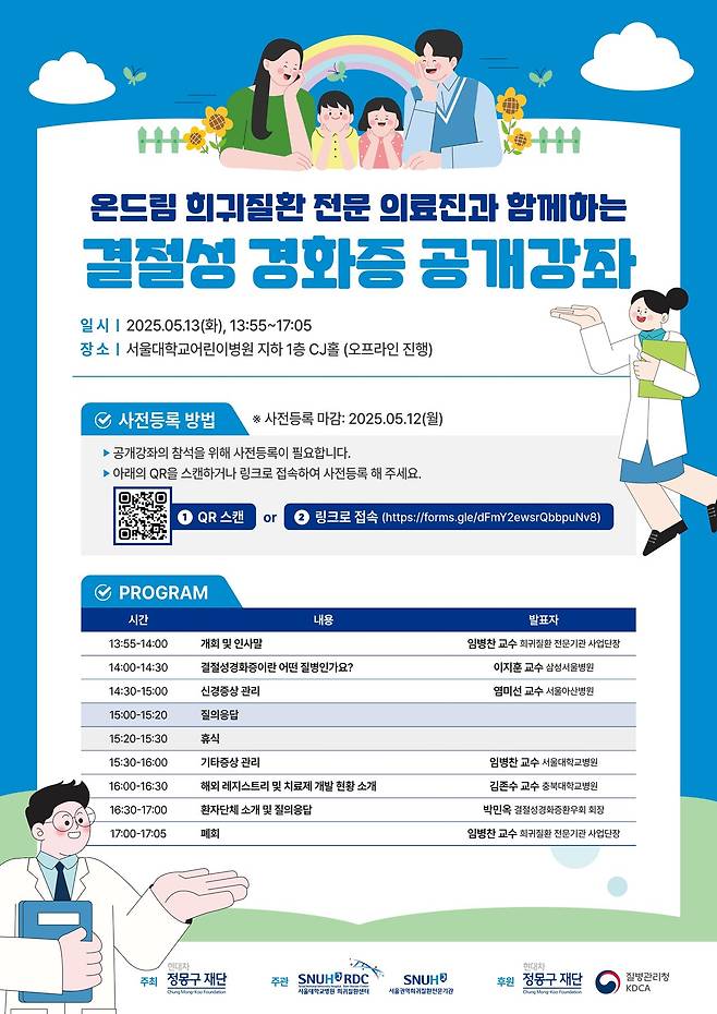 채종희 희귀질환센터장(임상유전체의학과)은 “희귀질환은 적은 환자 수만큼 정보나 치료 기회가 부족해 환자들의 고통이 깊은 질환”이라며 “이번 강좌가 환자·가족·의료진이 소통하며 올바른 정보를 전달하고, 서로의 경험을 나누며 치료를 지속할 용기를 얻어가는 시간이 되길 바란다”고 말했다