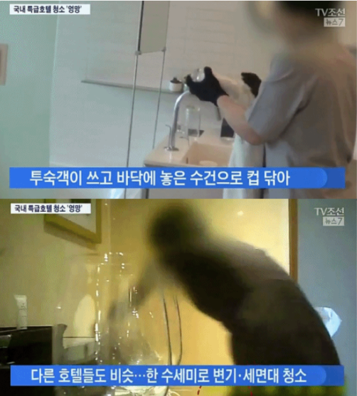 호텔 내 비치된 유리컵은 얼핏 보기엔 깨끗해보이지만 전문가들은 세균이 정말 많은 물건이라 입을 모으는데요. 2018년 방송된 TV조선 'CSI 소비자탐사대'에서는 국내 호텔에서 변기용 수세미로 물컵을 닦는가 하면, 사용한 컵을 물로 헹구기만 하고 다시 비치하는 등 비위생적인 청소의 민낯이 드러났습니다.
