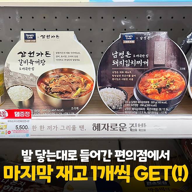 GS25 심플리쿡 2탄으로 출시된 신상은 고기맛집 <남영돈>과 <삼원가든>의 사이드 메뉴 2종이에요! 바로 고기와 잘 어울리는 돼지김치찌개와 갈비육개장!