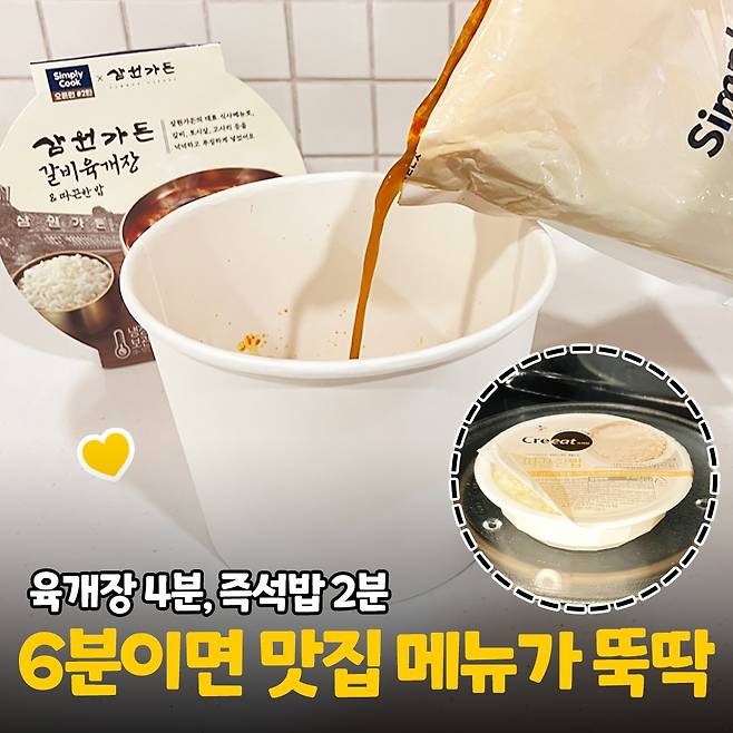 즉석밥은 점선까지 뜯어서 2분간 데운 뒤 갈비육개장과 같이 맛있게 드시면 된답니다☆