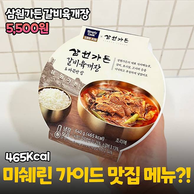 삼원가든은 2017년부터 꾸준히 미쉐린 가이드에 선정되고 있는 고기맛집이에요. 매장에서 단품 기준 20,000원에 판매되고 있는 육개장 갈비탕이 간편식으로 출시되었답니다.